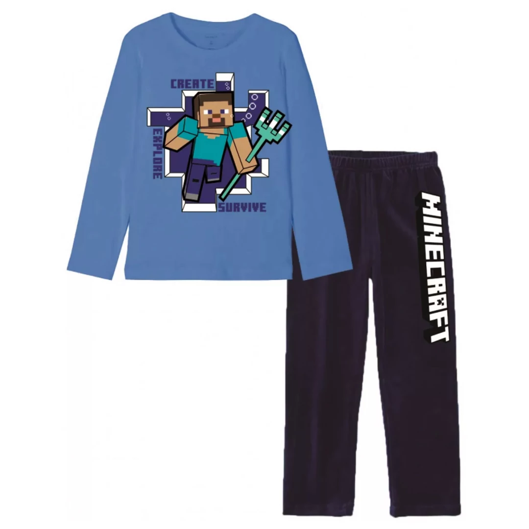A kényelmes, minőségi 95%-ban pamut pizsoma szetten Steve látható, amint úszik a tenger mélyén, kezében a szigonnyal, körülötte buborékok. A Minecraft jelszavai is, a Create-Explore-Survive szavak is szerepelnek a ruházaton. A fekete gumis nadrágon pedig, fehérrel a Minecraft logója van nyomtatva. A kétrészes Minecraftos pizsama szett hosszú ujjú, hosszú szárú. Anyagának köszönhetően pedig tartós színű, így remek ajándék egy rajongó számára!