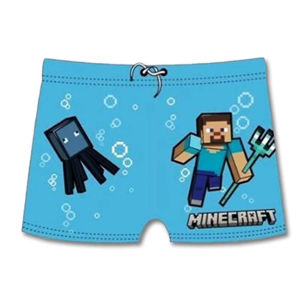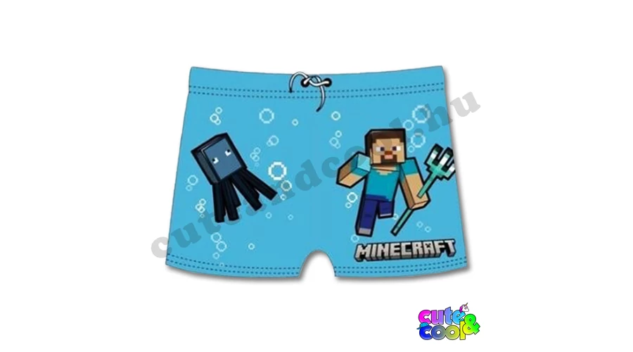 Steve kezében a szigonnyal díszített kék úszónadrág boxer stílusban. Steve a tintahalat megkerülve készül megszerezni a tenger mélyén lévő kincset. A Minecraftos fürdőgatya menő és gyorsan száradó, jó anyagú. Dereka gumis (kb 2 cm-t nyúlik) és zsinórral megköthető, hogy biztosan ne csússzon le.