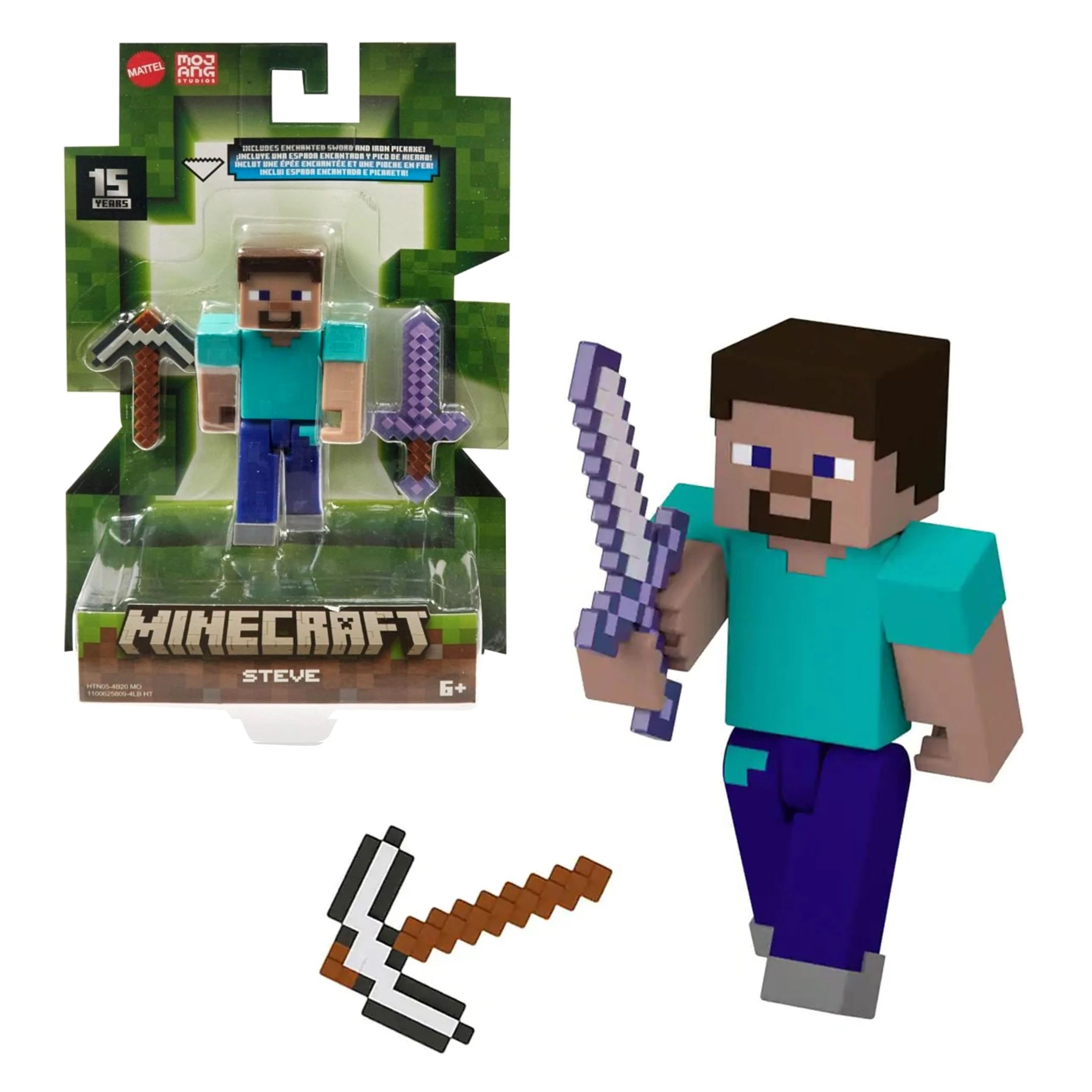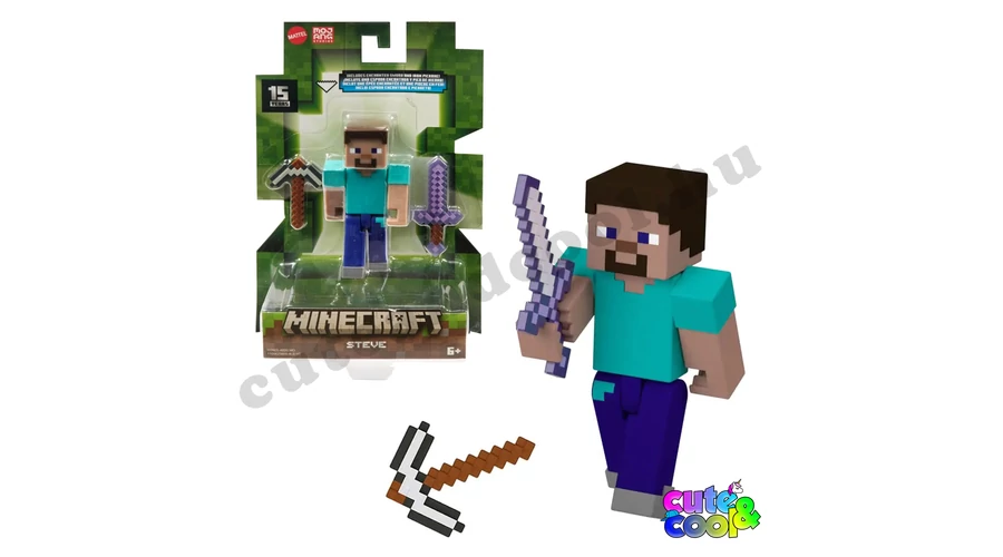 Steve a Minecraft világának főszereplője most megelevenedik elötted! A 8 cm magas, műanyag játékfigura kezei és lába mozgathatóak. Egy enchanted kardot és vascsákányt is adhatsz a kezébe, amivel megvédheti magát.