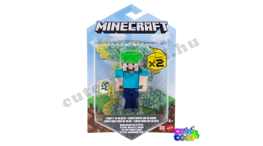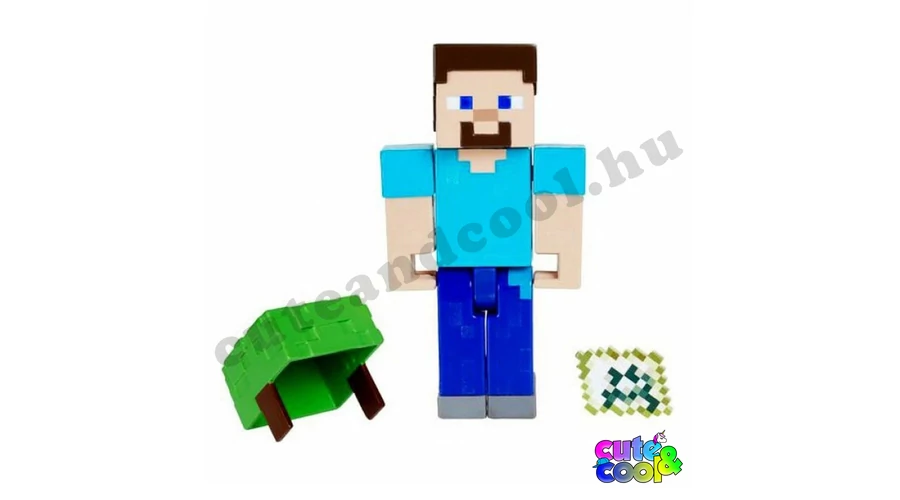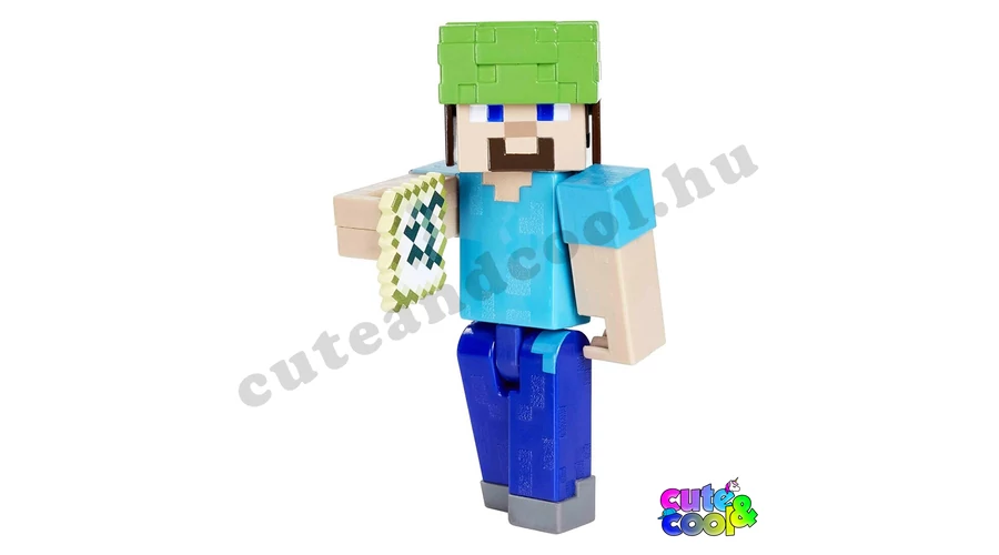 Steve a Minecraft világának főszereplője most megelevenedik elötted! A 8 cm magas, műanyag játékfigura kezei és lába mozgathatóak. Egy teknős sisak (teknős teknő vagy teknős páncél) és egy térkép van a szettben, illetve kettő kartonból hajtogatható blokk is. A teknőssisak (turtle helmet) a játékban segít a víz alatt maradni sokkal tovább, igazából könnyen megszerezhető mert 5 teknős pikkelyből lehet kraftolni. A rajongók értékelni fogják, hogy kedvenc Minecraft karaktereiket hitelesen hozták létre a játék jellegzetes pixeles dizájnjával.