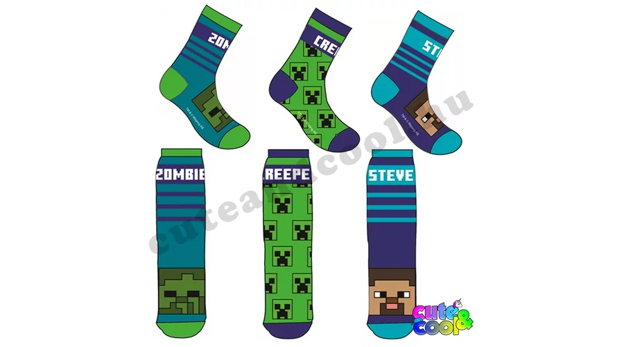 Minecraft Steve Zombi Creeper socks set