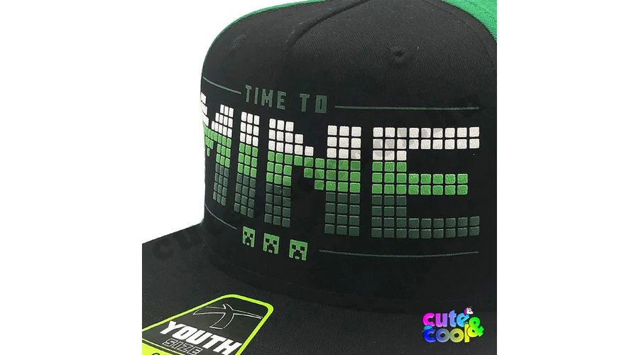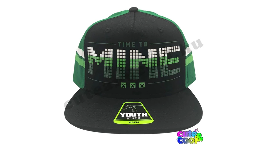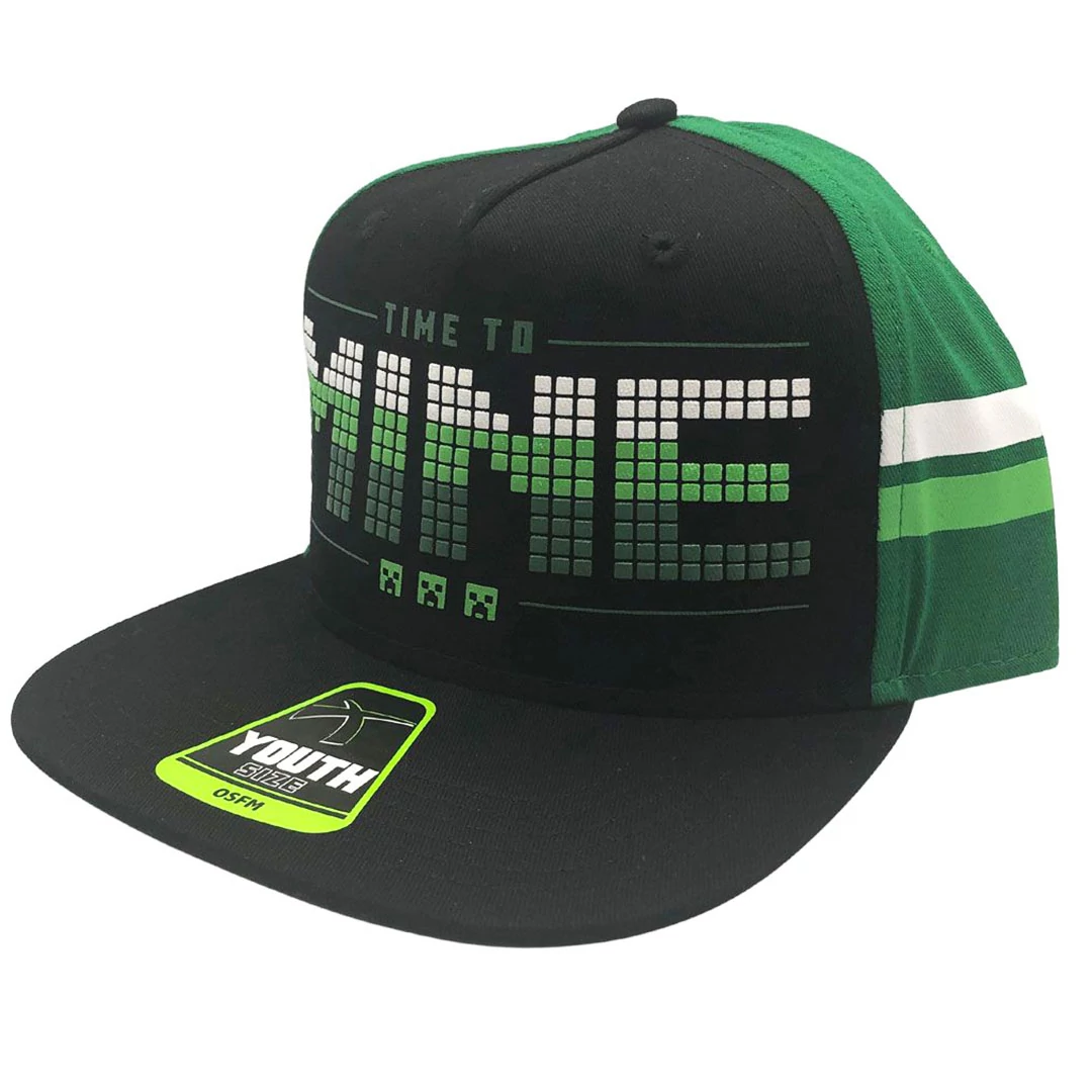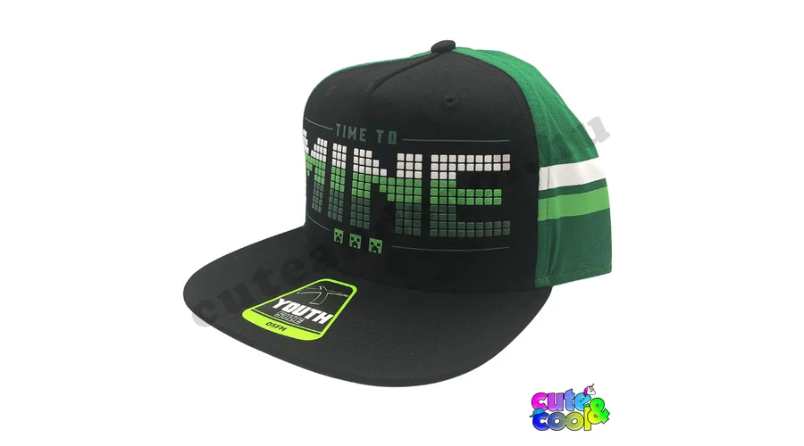 - Minecraft snapback for gamers - Mesh design for good ventilation - Style: Snapback (flat slit) - Materials: 80% polyester, 20% cotton - Size: S-M 54 cm, adjustable - Color: green, black Gift idea for Minecraft fans, boys, girls, for birthday, name day, summer holiday Officially licensed Minecraft