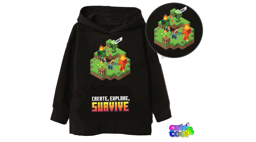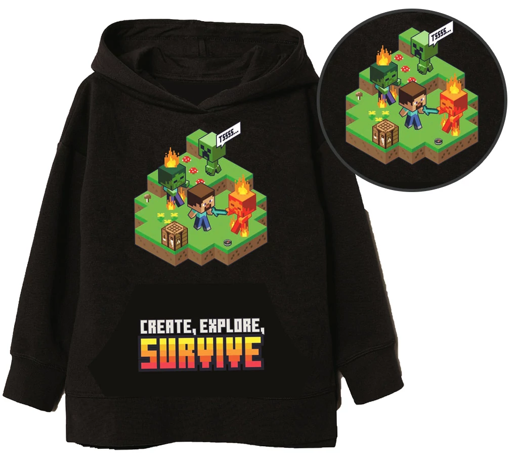 Minecraft Túlélő fekete gyerek kapucnis pulóver