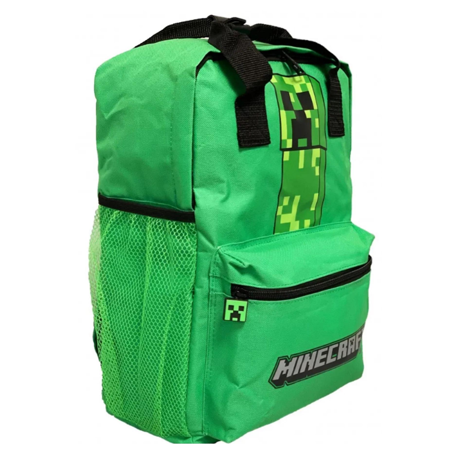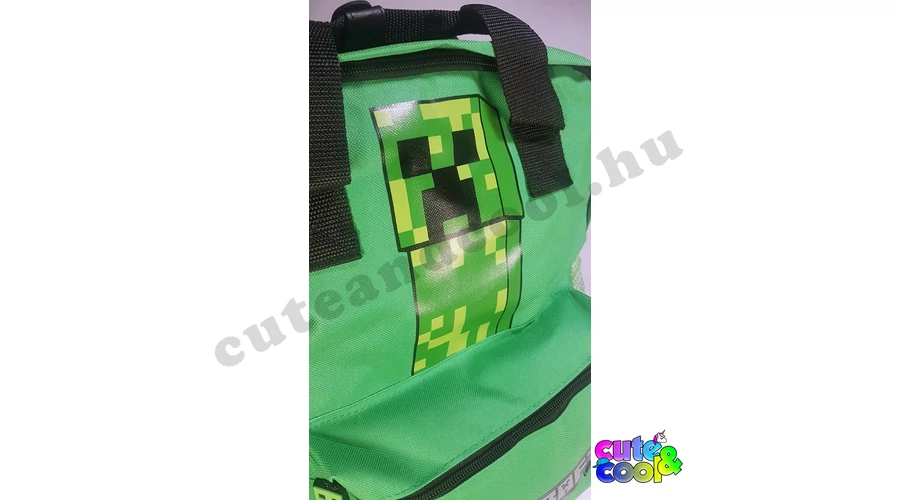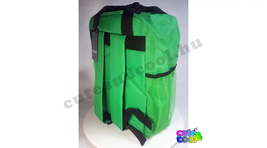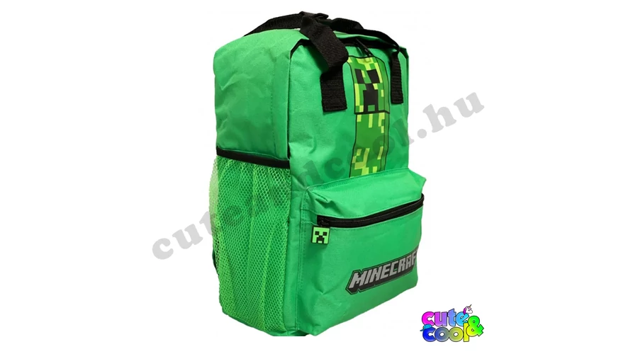 - big-sized Minecraft school bag - cool design - premium quality - simple, massive, durable - 2 comparments with zip closure - the tounge of the zipper is Creeper - waterbottle pockets on the sides - strong handle - padded back - adjustable padded shoulder straps - featuring character from the famous video game: Creeper along with the official Minecraft logo Excellent choice for school!
