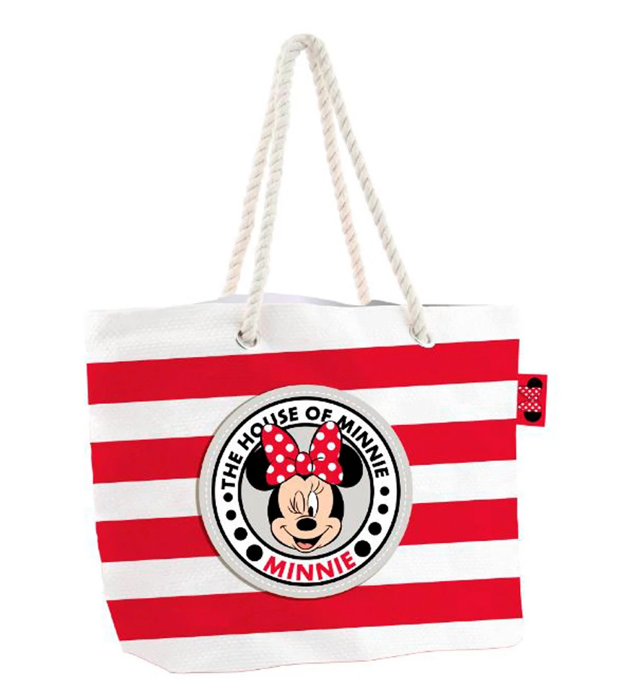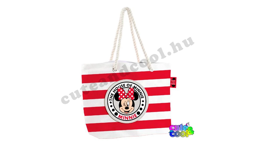 Itt a nyár irány a strand, tengerpart! Ebbe a nagyméretű trendi raffia Minnie strandtáskába minden belefér. Piros, fehér csíkos elején Minnie Mouse díszitéssel. Mágnes kapoccsal zárodik,egyterű oldalán egy kisebb méretű zseb is található.