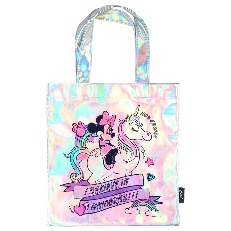 Cuki unikornison lovagló Minnie egeres, 100% unikornis varázslattal készült, csillogó-villogó hologramos kistáska.