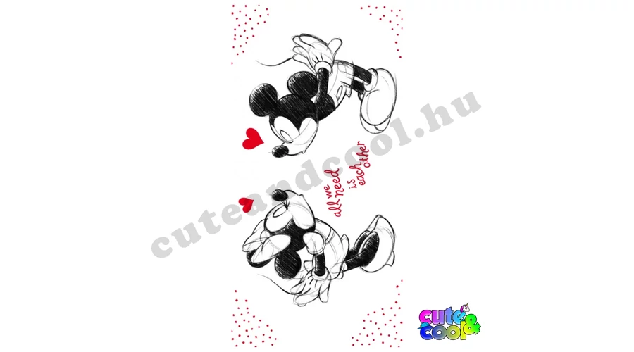 Kitűnő választás minden Disney rajongónak ez a cuki szerelmes Minnie&Mickey pamut törölköző strandra, tópartra, tengerpartra vagy uszodába.