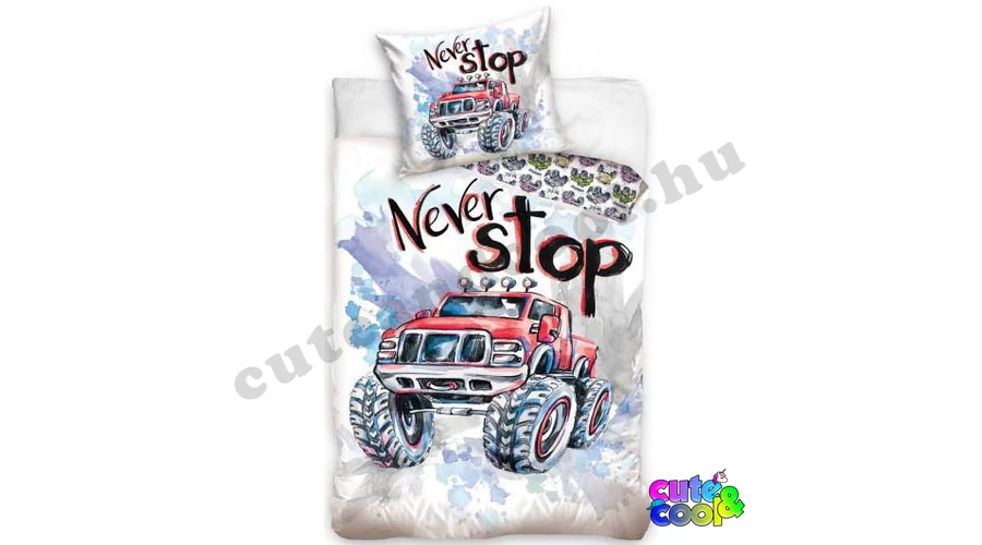 Vagány Monster Truck ágyneműhuzat 100% pamutból, kicsiknek és nagyoknak egyaránt szuper választás.