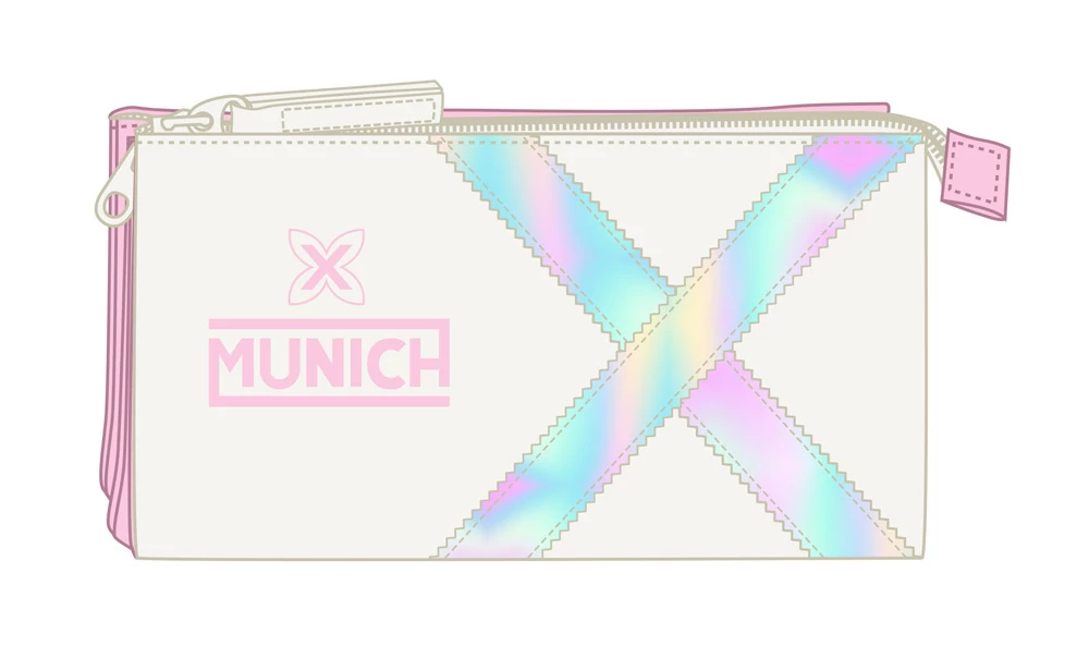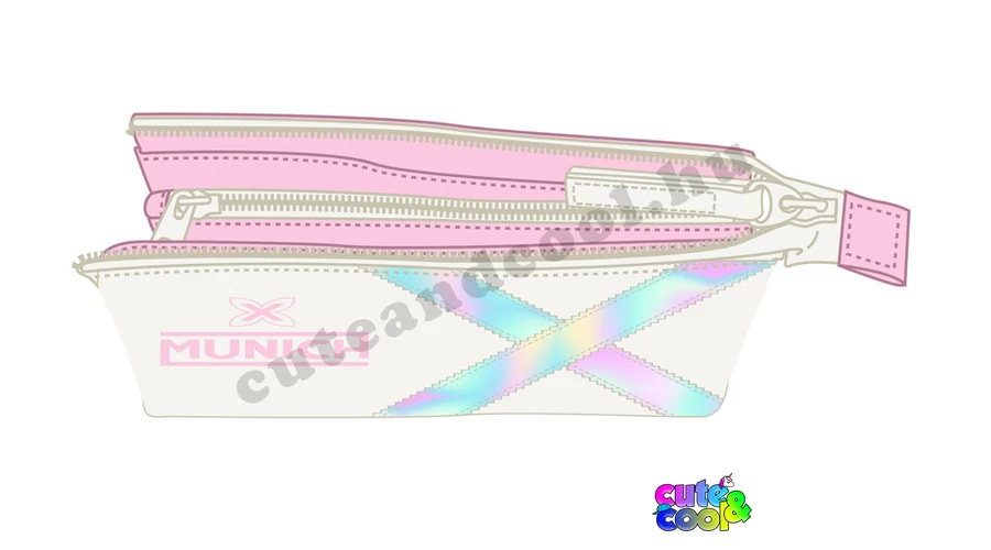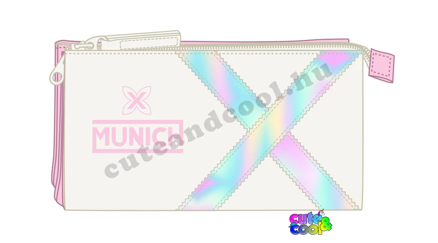 Trendi csajos hologram mintás rózsaszín-fehér tolltartó.