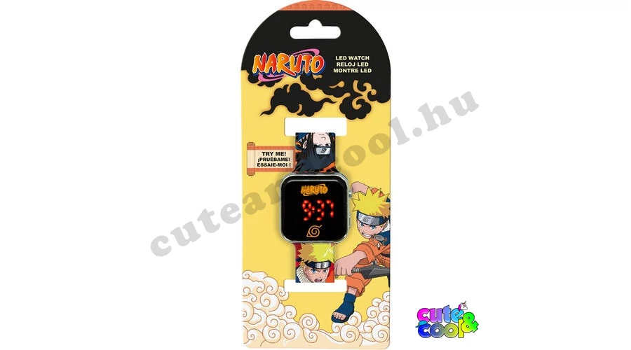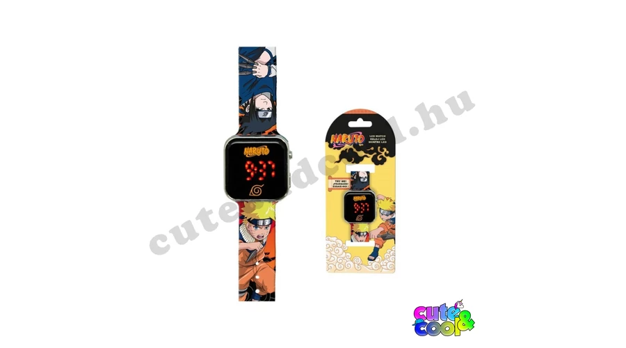 Menő NARUTO digitális led karóra gyerekeknek. Energitakarékos megoldásként csak gombnyomásra jelenik meg a led kijelző; az idő mutatásához egyszer, a másodperc mutatásához kétszer, a hónap és nap mutatásához háromszor kell megnyomni az oldalán a gombot. Élesen, jól olvashatóan megjelenik a piros led számkijelzés majd 3 másodperc múlva önmagától lekapcsol, hogy ne merítse feleslegesen az elemet és ne vonja el a gyermek figyelmét. Választható a 12 / 24 órás kijelzés. A szíj (karkötő) a kívánt méretnek megfelelően állítható 13 és 18 cm közötti csuklókerületre, anyaga puha de tartós így kényelmes a viselete. A szíj élénk narancssárga színű, rajta a Naruto karaktereivel. A számlap 35mm x 35 mm, Naruto felurattal és szimbólummal dísztíve. Ajánljuk az órát minden gyermek számára, akik már kíválóan ismerik és azoknak is, akik csak most ismerkednek az idő fogalmával!