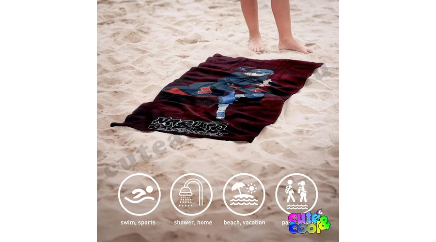 Ez a szuper Naruto Shippuden Uchiha Itachi mintás fürdőlepedő tökéletes választás az uszodába,