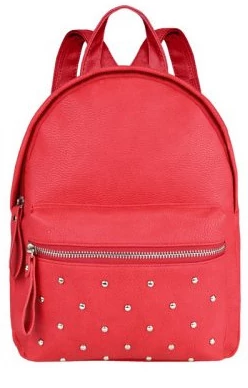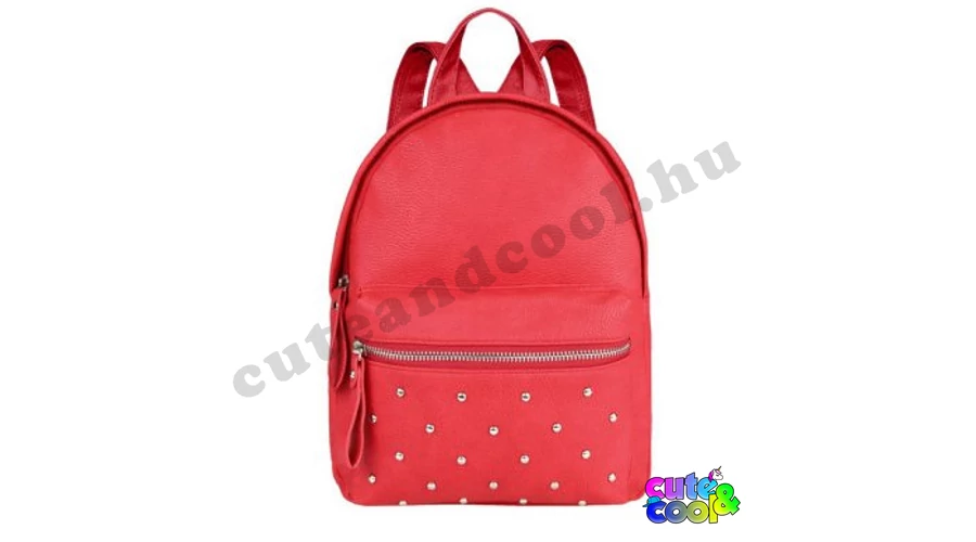 - small backpack - elegant red woman faux leather backpack - decorated with silver beads - 3 smaller pockets inside - adjustable shoulder straps