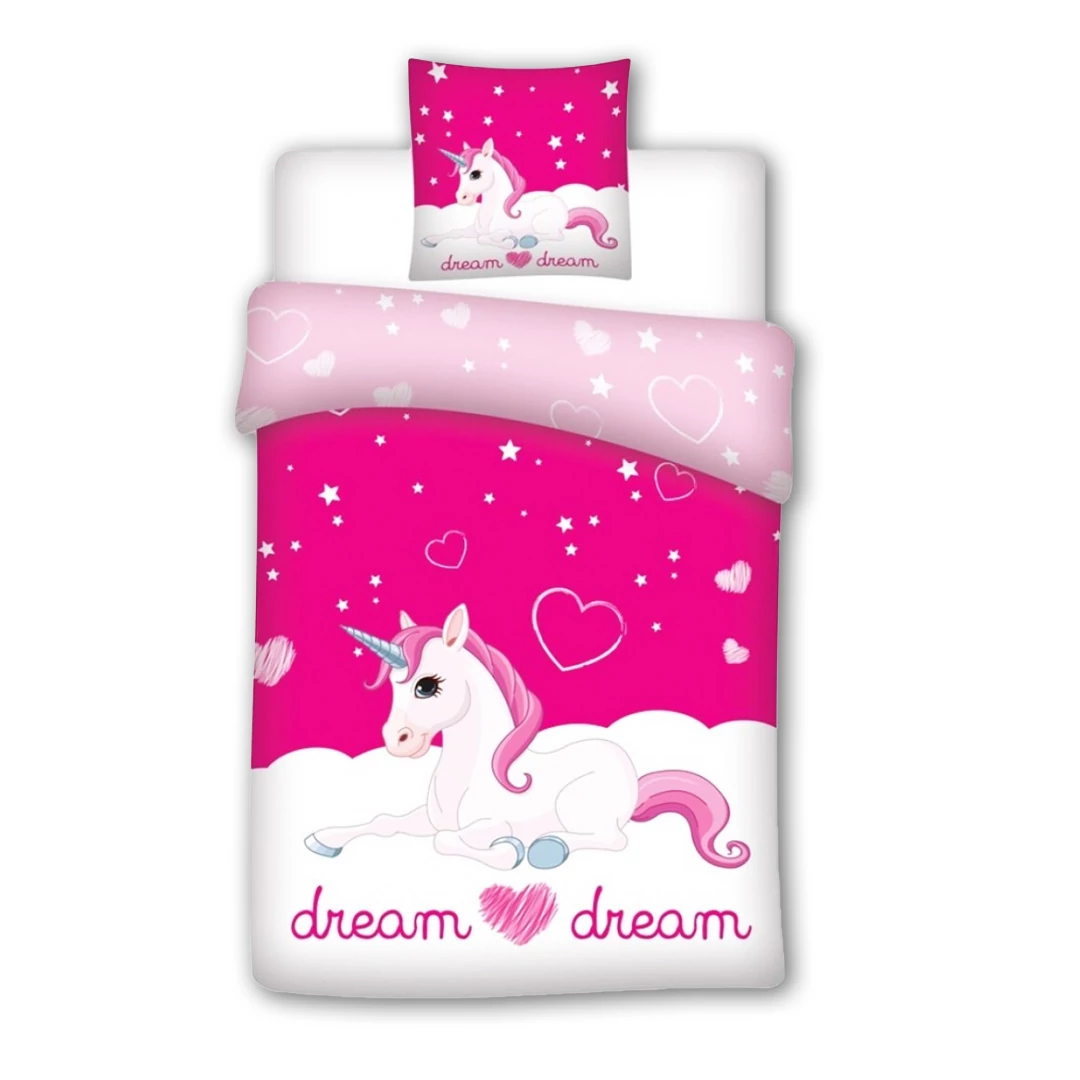 Wonderful rose pink, pink-colored, microfiber blanket and pillow, a two-piece set that will make every simple fan's heart beat faster. This cute bedding set with unicorn pattern is the perfect choice for those who love this adorable and magical creature! The advantage of the comfortable microfiber material is its softness and comfort. The pink and pink colors create a cheerful and lively atmosphere, enhancing the room's decoration. The cute unicorn motif is guaranteed to bring a smile to your face! This two-piece Unicorn bedding set can be an ideal gift for those who are passionate about unicorns and love cute decorations. Whether it's a birthday or name day, this blanket and pillow will surely bring joy.