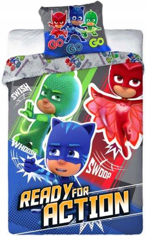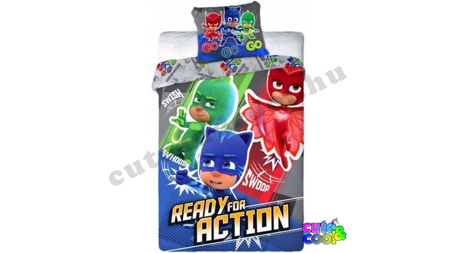 Vagy akár aludhatsz is ebben a pamut  Pizsihősök ágyneműhuzatban, melyen Gekkó, Bagoly és Macska őrzik az álmod.