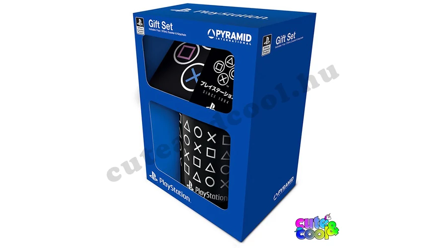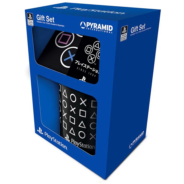 Vagány PlayStation ajándék szett. Tartalmaz egy bögrét amin, A PS kontroller ikonjai és a hivatalos PlayStation logó látható, egy bögrealátet szintén ezen ikonokkal és egy playStation kulcstartót. Szép díszdobozban, így remek ajándék lehet egy konzol gamer rajongónak! Bögre űrtartalom: 315 ml