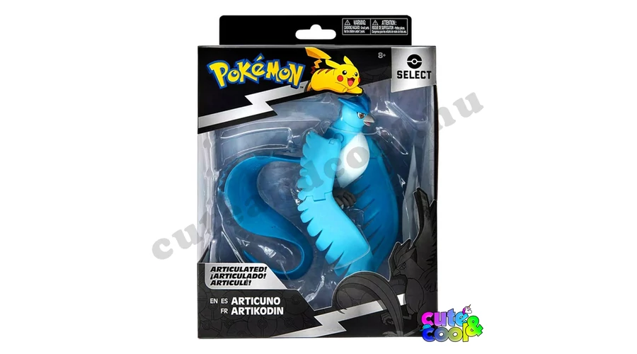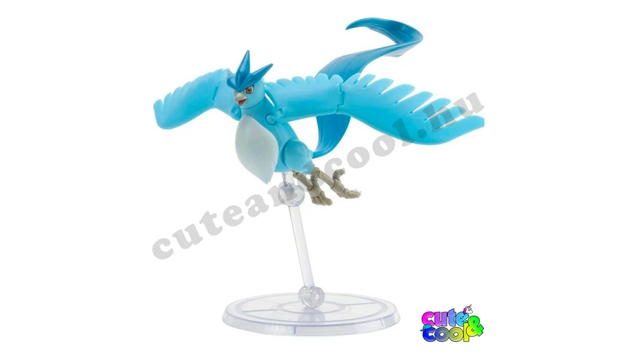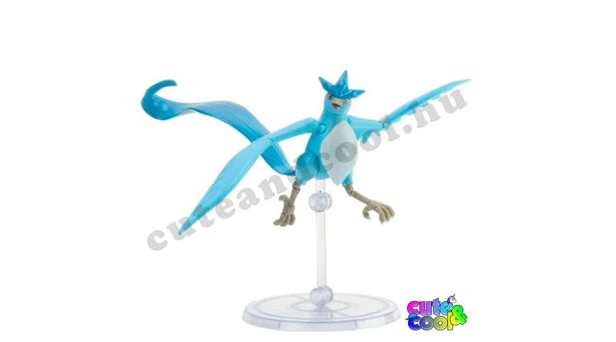 A Pokémon 25. évfordulójára kiadott Pokémon Select figura, azaz a legendás Articuno. A jég/repülő elemű legendás madár pokémonnak, Articunonak mozdítható nyaka, szárnyai, lábai, karmai így bármilyen alakzatba beállíthatod. Sőt! Egy átlátszó állványra is felhelyezheted mintha repülne. Válaszd ezt a nagyon mutatós, prémium figurát ha lenyűgöző legenedás Articuno rajongó vagy! Most szép díszdobozban lehet a tied!