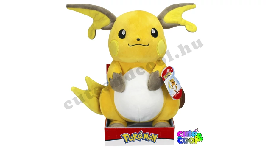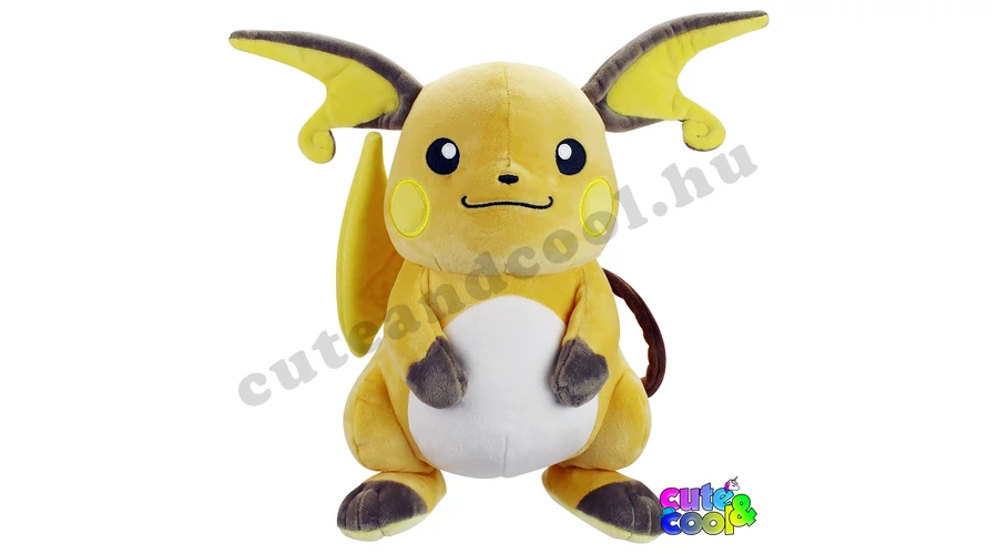 Cuki de tiszteletre méltó elektromos pokémon, azaz Raichu. Raichu a kis elektromos egér Pikachu továbbfejlődött változata. Kelelmes tapintású finom plüss anyagú (garantáltan nem ráz), 25cm magas és remek alvóbarát lehet egy pokémon mester számára!