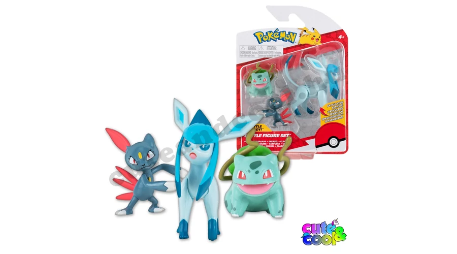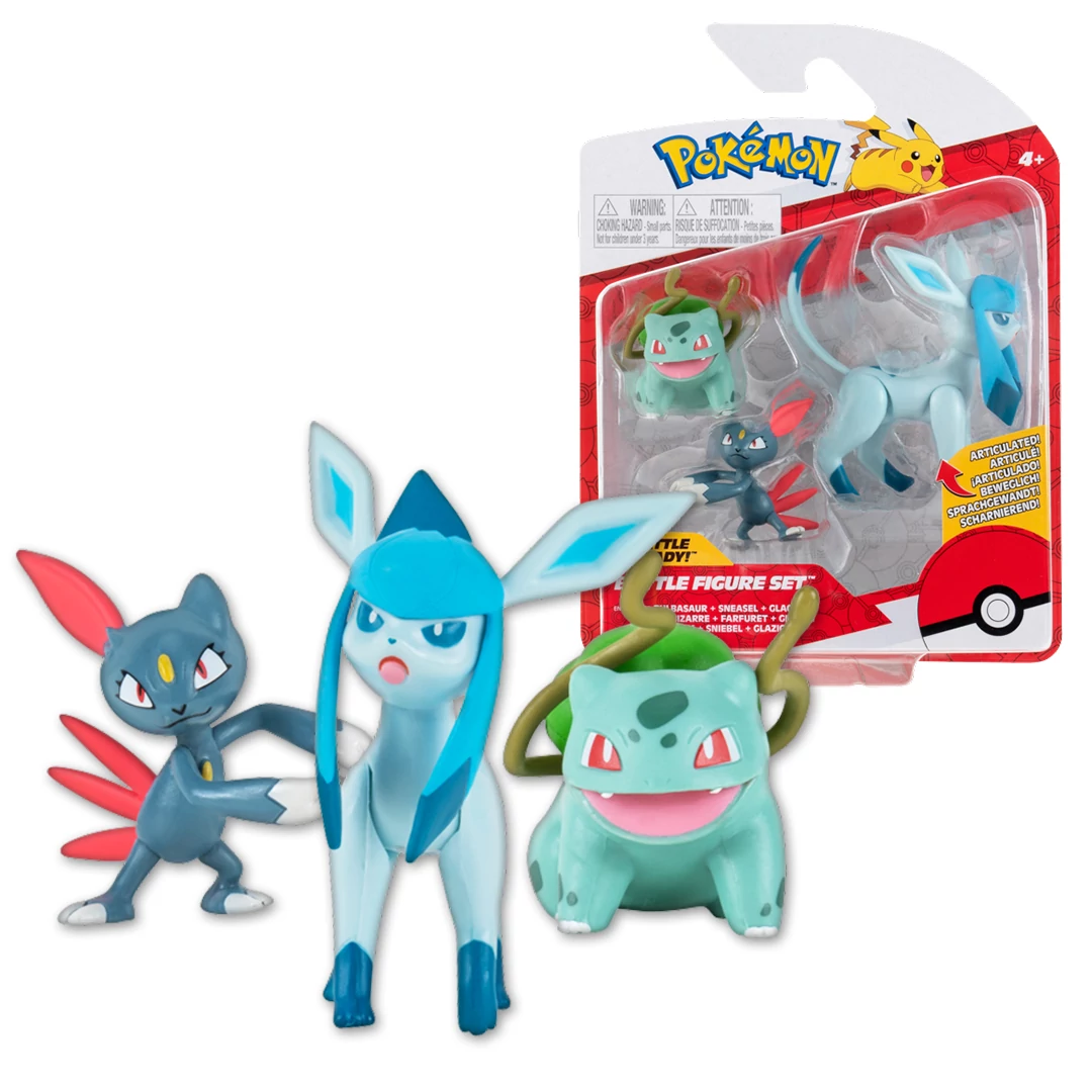 This set includes 3 collectible Pokemon battle figures, each featuring a perfect likeness of Bulbasaur, Sneasel, and Glaceon. The figures are compatible with the Clip 'N' Go series. This set is great for any Pokemon fan and provides hours of entertainment!