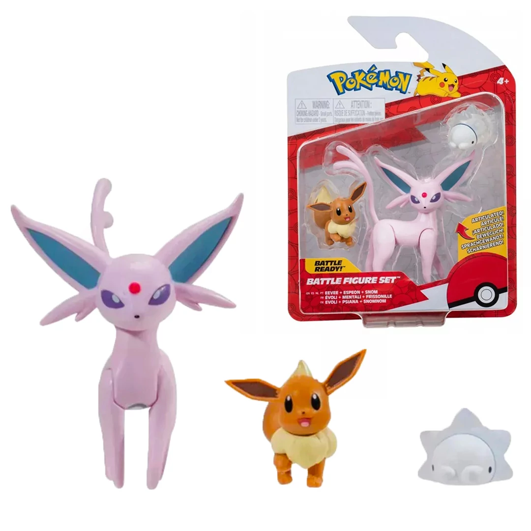 Gyűjthető Pokémon harci figurák 3db-os szettben. A normál típusú, kis cuki Eevee, a jég bogár Snom és a szépséges, négylábú Espeon pokémonok találhatóak ebben a csomagban. A pokémonok kompatibilisek a Clip 'N' Go szériával. A nagyobb pokémonnak mozgathatóak a testrészei. Remek szórakozás egy kis pokémon rajongónak!
