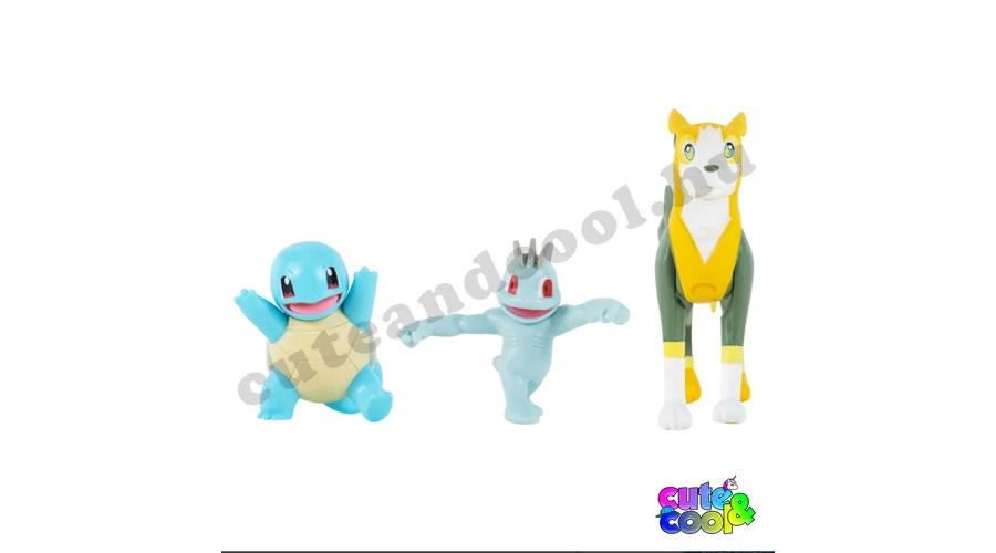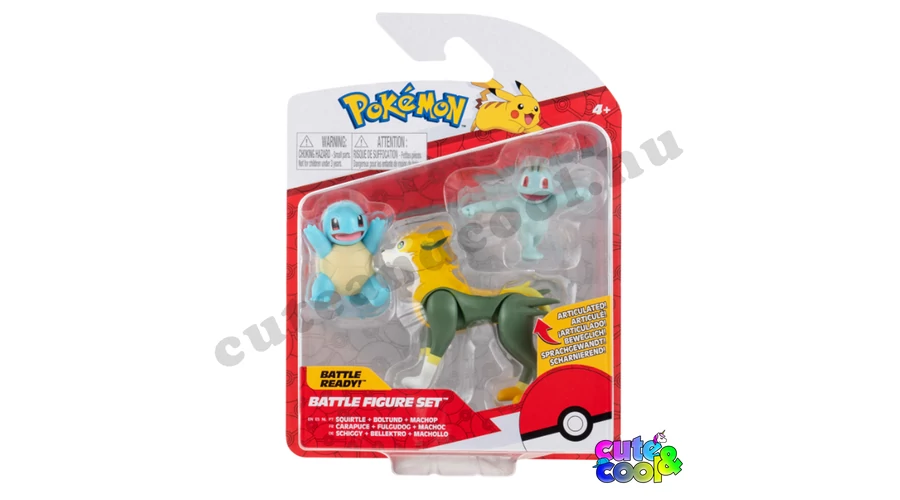 Gyűjthető Pokémon harci figurák 3db-os szettben. A mindig vidám Squirtle, az izomkolosszus Machop és a villámkutya Boltund pokémonok találhatóak ebben a csomagban. A pokémonok kompatibilisek a Clip 'N' Go szériával. Remek szórakozás egy kis pokémon rajongónak!