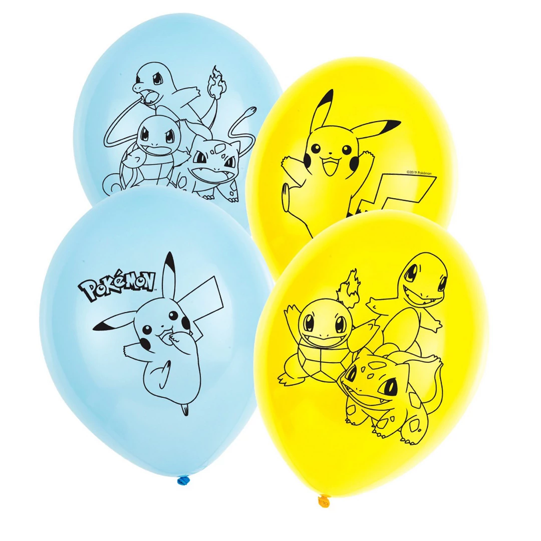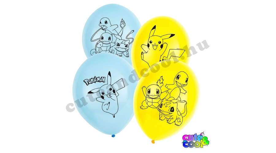 Pokémon Lufi csomag amiben 6 db sárga és kék léggömböt találsz amin a kedvenceid, Pikachu, Charmander, Squirtle és Bulbasaur szereplnek. A cuki Pokémonos lufik igazán feldobják a hangulatot egy Pokémon mester szülinapján!