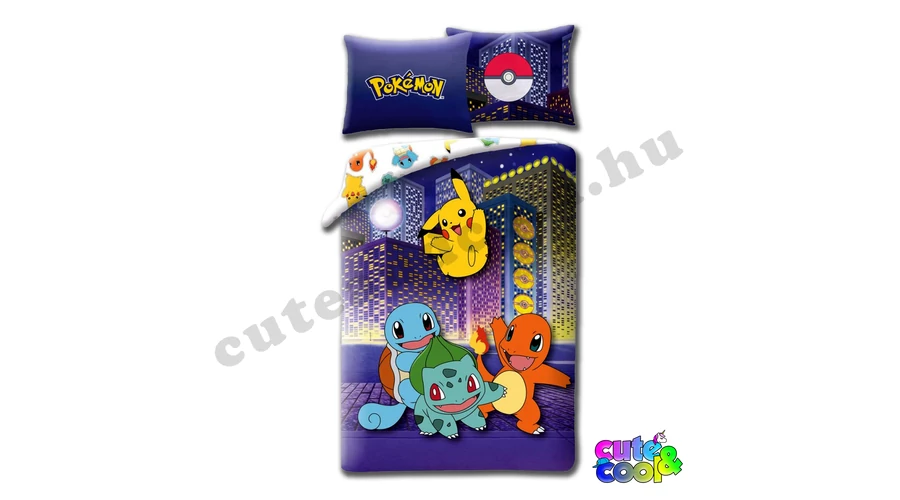 Élénk színű, a Pokémon világ négy legismertebb pokémonjaival diszített pihe-puha ágyneműhuzat. Pikachu mellett Bulbasaur, Charmander és Squirtle is szerepel ezen a kétrészes és kétoldalas ágynemű garnitúrán. Puha és jó színtartó.