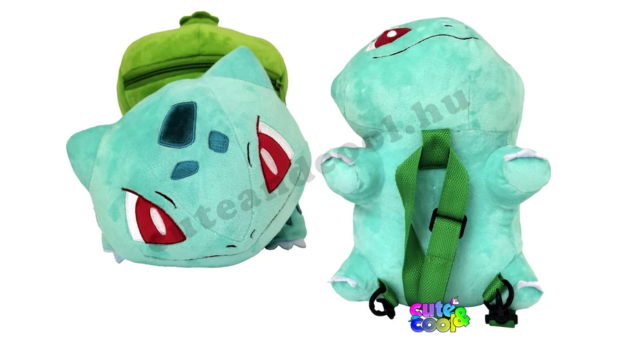 Pokémon Bulbasur formájú pihe-puha gyerek táska ! Az eredeti Pokémon licenc táska egy 36 centis Bulbasur plüss figura. Az hátizsák 25x15x36cm méretű, hátsó részén cipzárral, ami tökéletes, egy kulacs, szendvics akár ruha és a kedvenc játékok szállítására is. A táska vállpántjai állíthatóak, így kényelmes a használata egy hosszabb kiránduláson is!