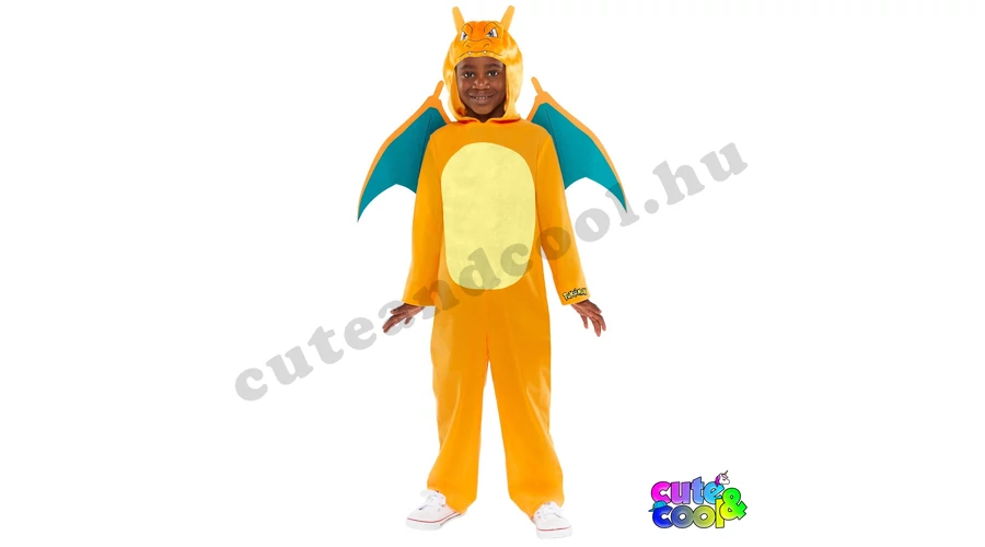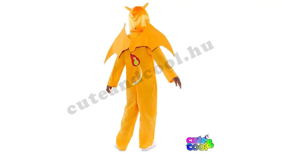 Legyél te a menő Charizard pokémon! A Charizard sárkány pokémon jelmez tökéletes választás egy igazi poké mesternek farsangkor. Az élénk narancs színű jelmez kapucni részén van Charizard arca, hátán a türkíz színű belső szárnyak. A kezeslábas Charizard jelmez hátsó végén a farkán lévő lángcsóva is megjelenik.