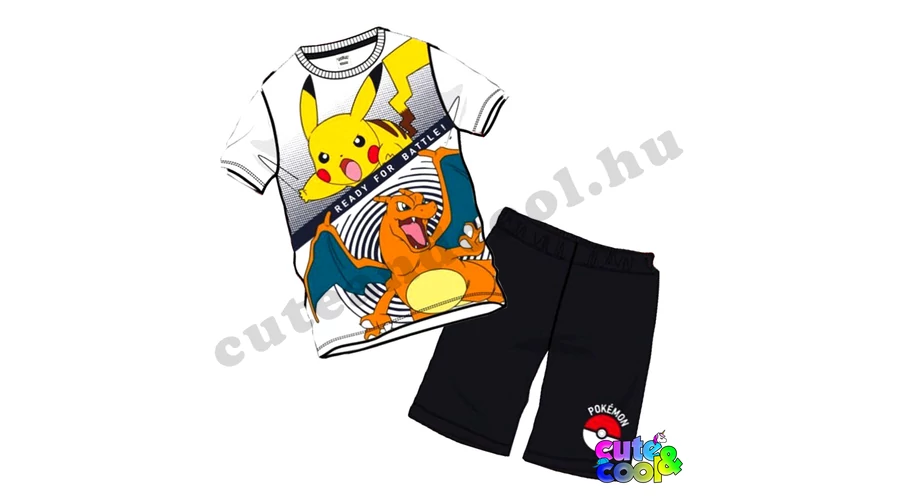 Minőségi és szuper menő Charizard VS Pikachu póló és rövidnadrág. Ez a pokémonos szett tökéletes napközbeni használatra, vagy akár pizsamának is kinevezheted. A gyerek póló anyaga jól szellőző pamut, rajta a két legmenőbb pokémonnal akik már jó párszor összecsaptak, például a Pikachu a Detektív filmben is. Remek választás egy pokémon fannak!