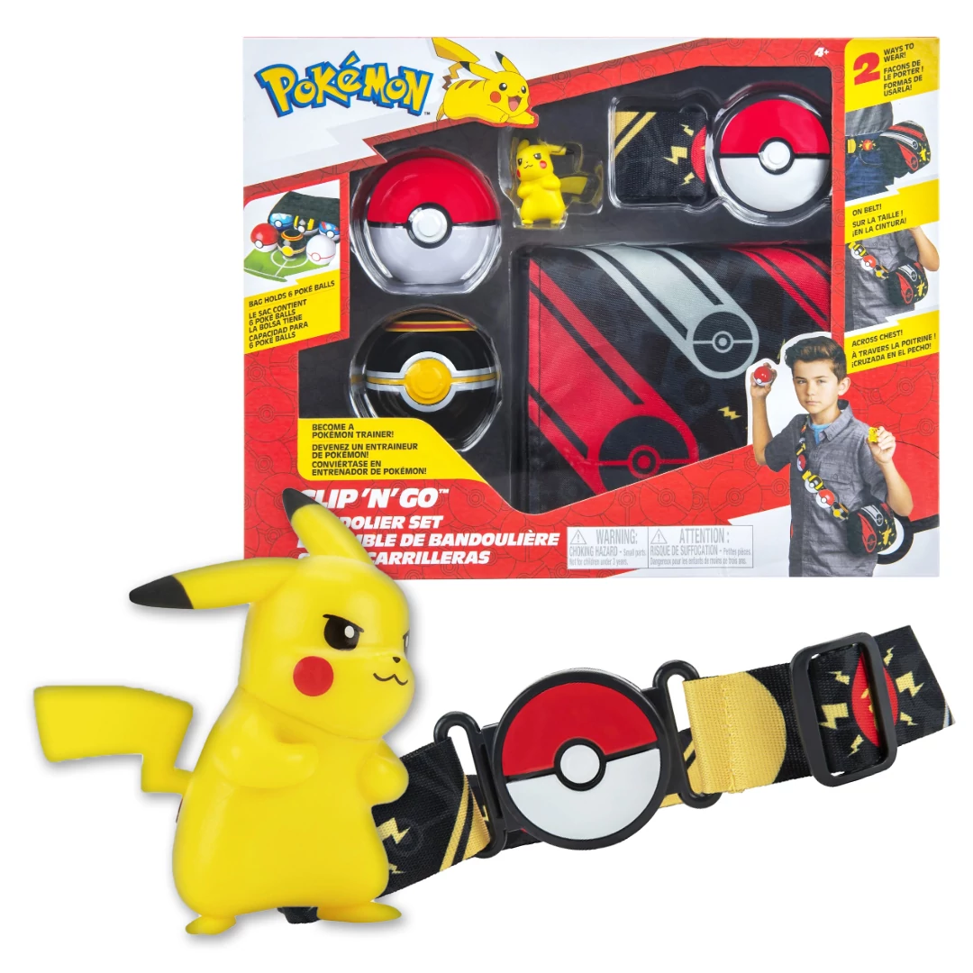 Egy pokémonmesternek szüksége lesz erre! Egy pokélabda övcsatos, állítható öv amire egy pokémonos táskát rögzíthetsz oldaltáskaként vagy övtáskaként. A táskába gyűjtheted a pokélabdákat (a szett tartalmaz 2 db pokélabdát) azokba peidg a pokémonjaid (1db Pikachut tartalmaz). A kistáskába akár 6 pokélabda is belefér, a tetejét kihajtva pedig egy kis edzőpálya van. A szett kompatibilis a Clip 'N' Go és Battle figures (harci figurák) termékekkel. A 4 cm-es figurák berakhatóak a labdákba, a labdákat pedig az övre, nadrágra lehet csiptetni. Biztos örömet okozhat ez a nagy mutatós ajándék egy Pokémon rajongónak! Pokémonmester, szerelkezz fel ezzel a szettel a harcra!