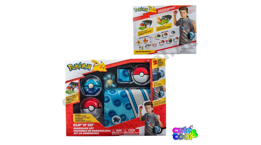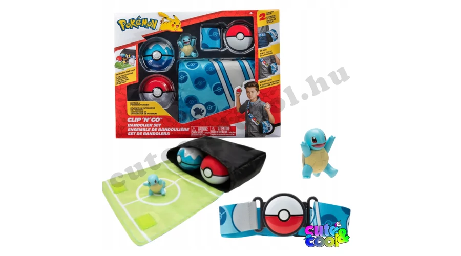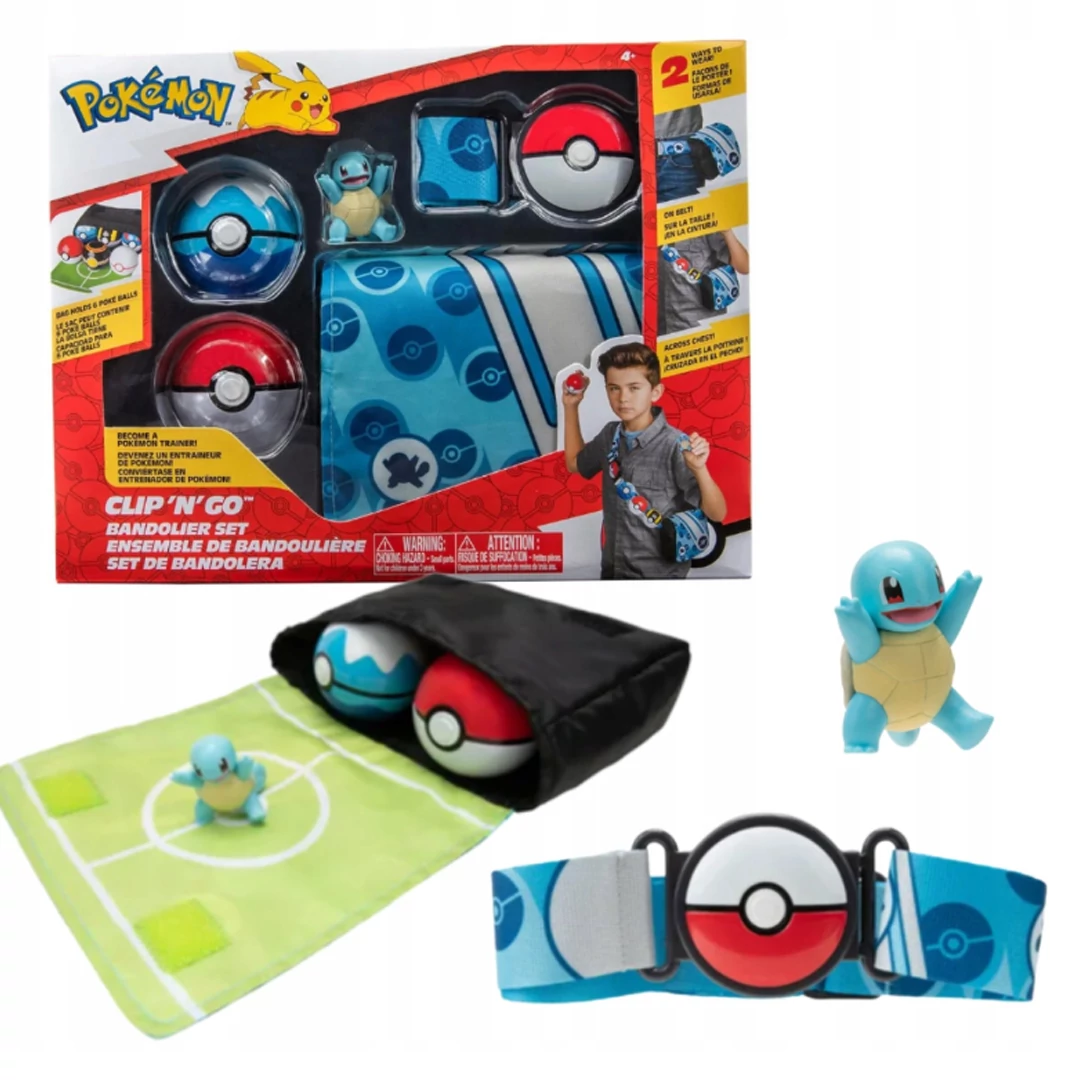 A Pokémon Master will need this Pokémon Starter Kit! It includes a Poke Ball belt with an adjustable strap that can be used as a side or waist bag. The bag can hold Poke Balls (2 included in the set) and your Pokemon (1 Squirtle figure included). The small bag can fit up to 6 Poke Balls, and when unfolded, it reveals a mini training field. The set is compatible with Clip 'N' Go and Battle Figures products. The 4 cm figures can be placed inside the Poke Balls, which can be attached to the belt or pants.