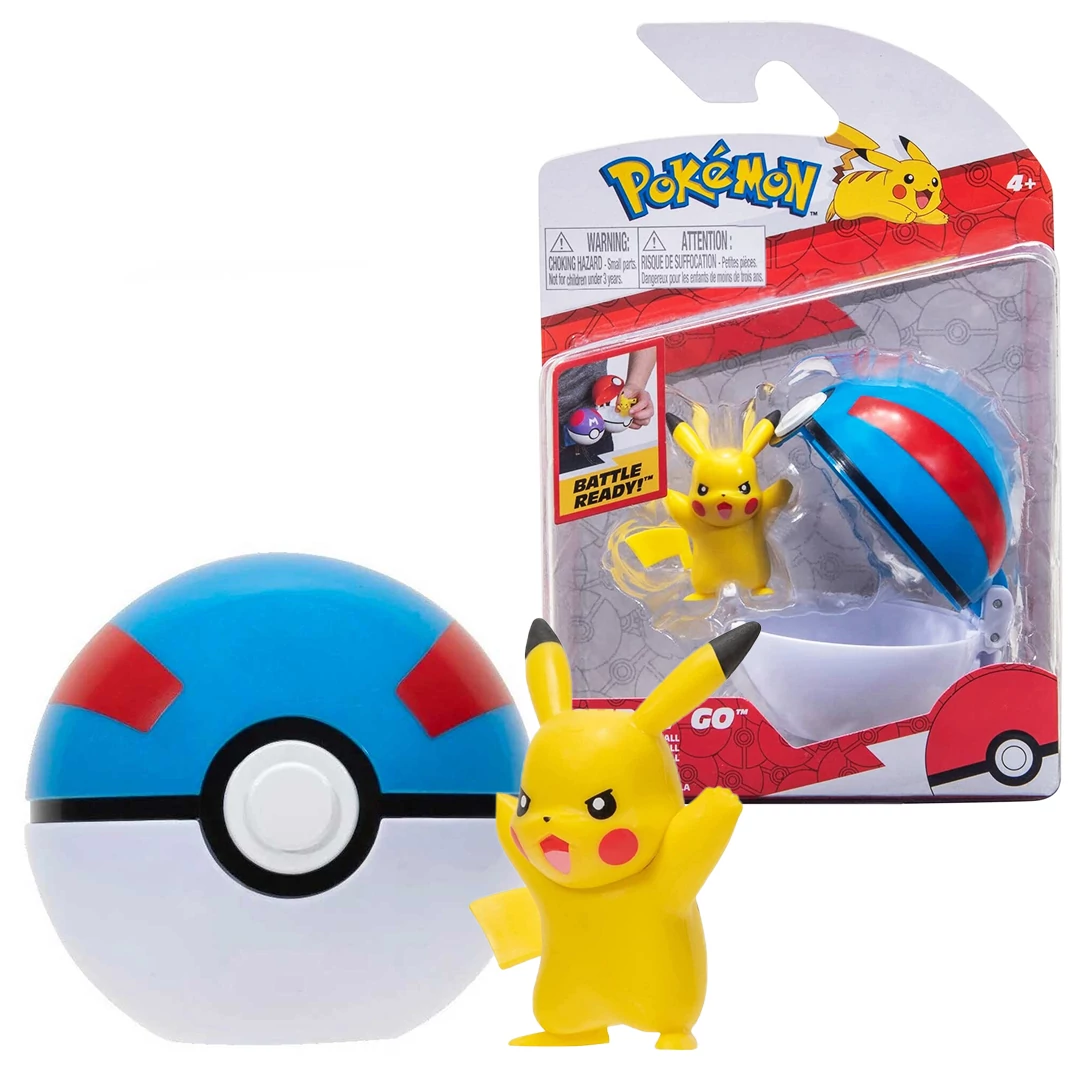 A Pokémon Clip 'N' Go szériában a gyűjthető pokémonokat a labdádba zárhatod és ha a pillanat követeli harcra hívhatod őket! Ebben a csomagban egy pokélabdában Pikachu pokémont szerezheted meg! Pikachu egy kis sárga elektormos pokémon, aki igazi hű társ! A kék-piros Great pokélabdába bezárhatod Pikachut és az övedre, nadrágodra csíptetheted, hogy kéznél legyen, ha harcra kerül a sor!
