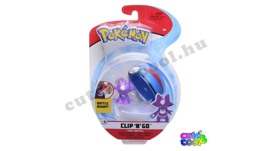 Ebben a csomagban egy pokélabdában Toxel pokémont szerezheted meg! A kék-fehér piros csíkos Great (Nagy) pokélabdába bezárhatod Toxelt és az övedre, nadrágodra csíptetheted, hogy kéznél legyen ha harcra kerül a sor!