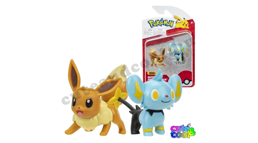 Szerezd meg Eevee-t és Shinx-t! Ebben a harci figura szettben két cuki pokémont találsz, a normál típusú Eeveet és az elektromos Shinxt. A pokémonok kompatibilisek a Clip 'N' Go szériával. Remek szórakozás egy kis pokémon rajongónak!