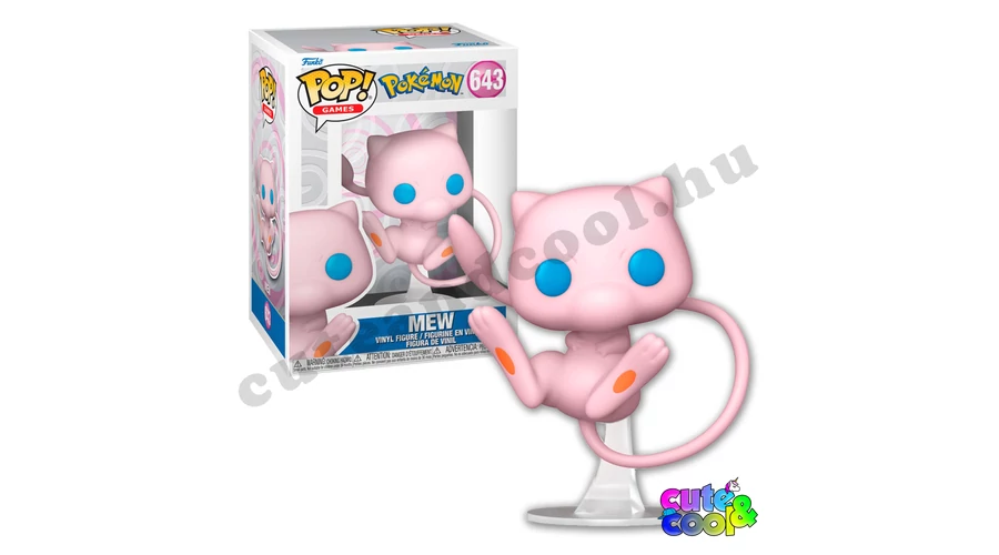 Mew az egyik legritkább és legerősebb Pokémon, ráadásul még misztikus is. Halvány rózsaszín bőre, cuki arca, kis mérete ne tévesszen meg ugyanis szinte legyőzhetetlen. Az első generáció 151 számú pokémonja. Ez az állványon álló 10 cm-es Mew figura tökéletes kiegészítője bármely Pokémon kollekciónak! A Mew figura kiváló minőségű vinil műanyagból készült és kialakítása hű a Pokémon világhoz. A Funko Pop! 643-dik figurája.