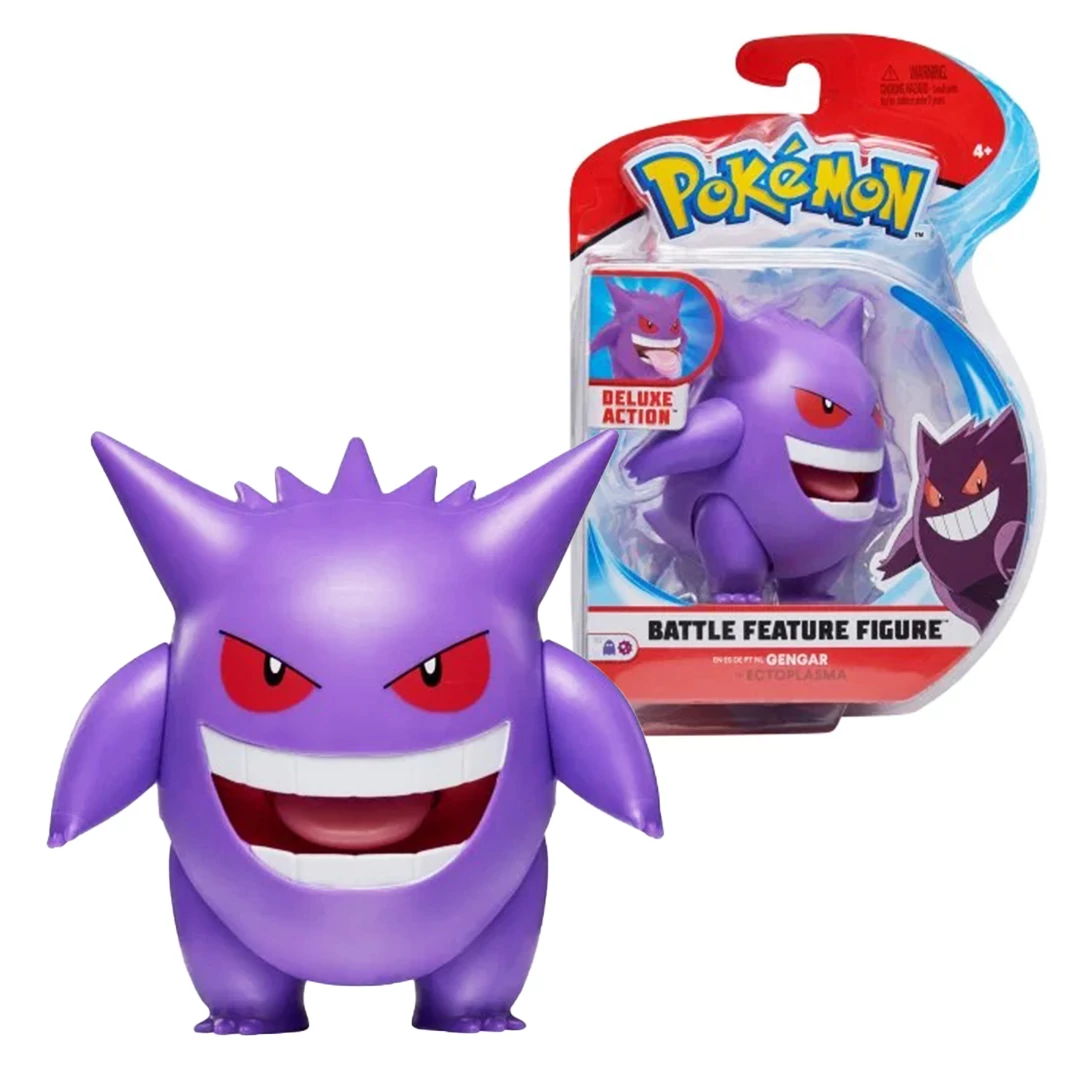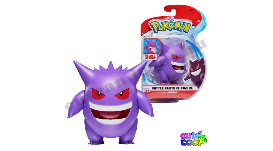 Gengar egy kétlábú, szellem Pokémon. Teste lila, gömbszerű, Ez a 10 cm Gengar figura tökéletes kiegészítője bármely Pokémon kollekciónak, olyan részletekkel, amelyek úgy néznek ki, mintha a Pokémon tévéműsorból ugrott volna ki! A kiváló minőségű vinil műanyagból készült és kialakítása reális a Pokémon világhoz! Ezt a pokémon játékfigurát ha lenyomod kinyújtja a nyelvét, pont mint a mesében!