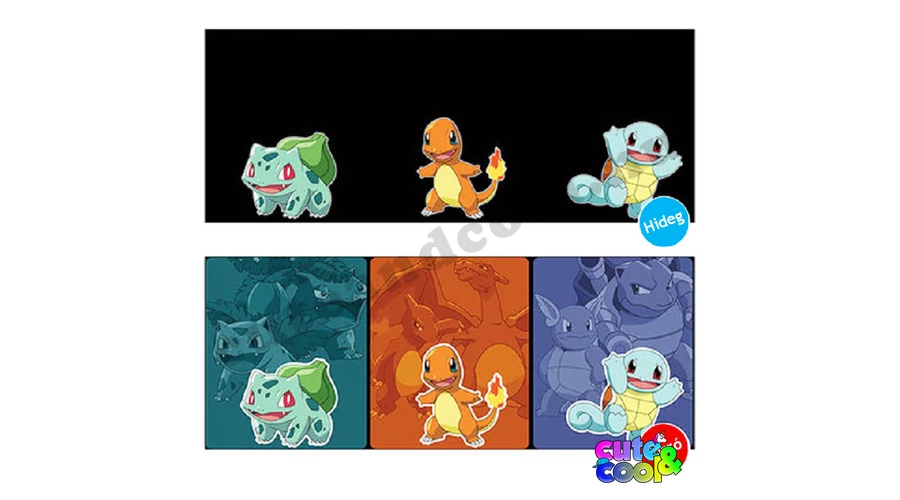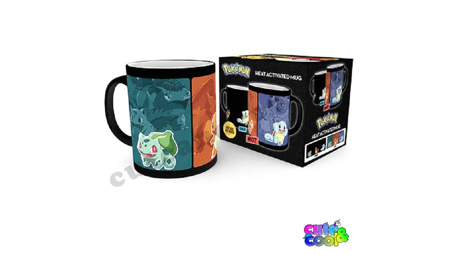 Menő hőre változó bögre. A forró ital hatására Squirtle, Bulbasaur és Charmander mögött megjelenik átalakult formájuk, Wartortle és Blastoise, Ivysaur és Venusaur, Charmeleon és Charizard. Pokémon mesterek tökéletese ajándéka lehet!