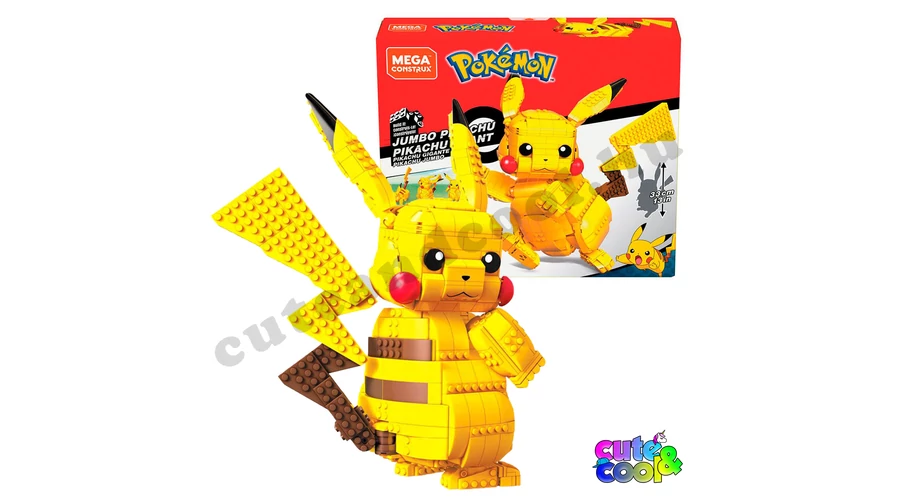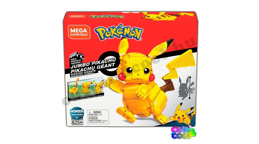 Mega Construx építős játék, ahol kedvenc Pokémonod, Pikachu-t tudod összerakni. Útmutató segítségével kell összeilleszteni a 825db-os készletet. Az eredmény pedig egy 33 cm magas, mozgatható Pikachu amit különböző pózokba helyezhetsz el, játszhatsz vele. ez a JUMBO óriás csomag igazi kihívás a Pokémon rajongóknak! A doboz mérete is impozáns, 35x31x9cm.