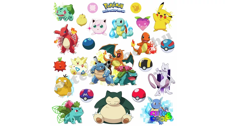 Anyaga: öntapadós vinil Méretek: matricalap (4db): 46 x 25 cm Pár Pokémon mérete: Pikachu: x cm Mewtwo: x cm Venusaur-Charizard-Blastiose hármas: x cm eredeti licence termék