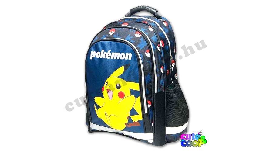 A táska sötét-fekete alapszínű, ami stílusossá és időtlennek teszi. Az elején büszkén díszeleg egy hatalmas Pikachu figura, aki mosolyával mindenkit vidámsággal tölt el. A "Pokémon" felirat pedig egyértelművé teszi, hogy itt valami különleges rejtőzik. Emellett a pokélabdák is színesen és vidáman dekorálják a táskát, így mindenki egyből felismeri, hogy egy igazi Pokémon-mesterrel van dolga! A biztonságot sem feledtük! A táskán elhelyezett fényvisszaverő plazmák megvédnek a rossz látási viszonyok közötti sétáink során, így az utakon való közlekedés is biztonságosabbá válik.
