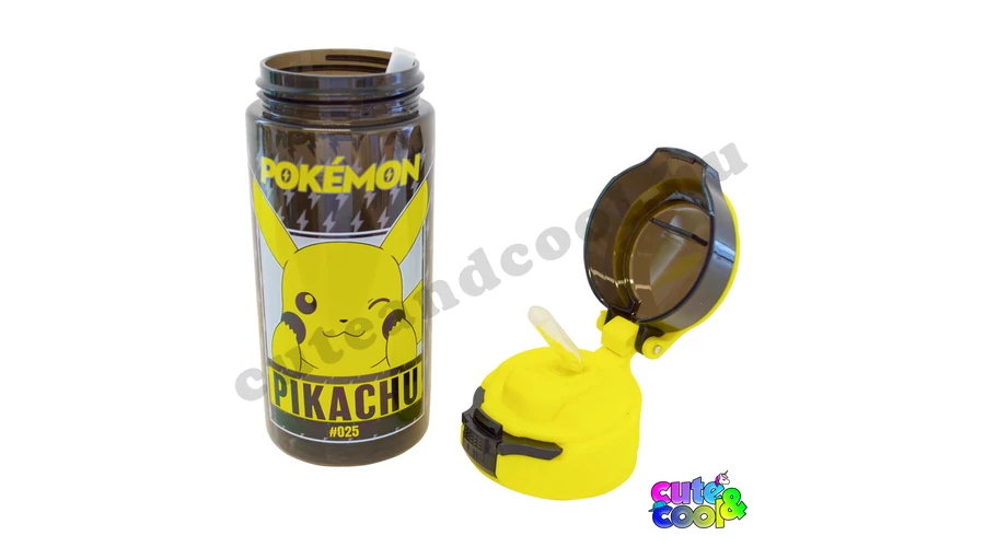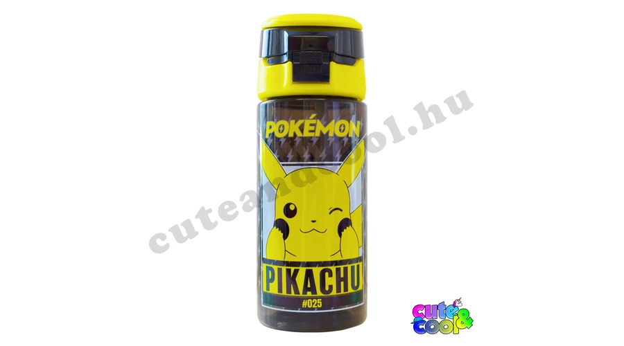 500 ml űrtartalmú Pokémonos, csöpögésmentes kulacs. Sárga-fekete dizájn, Pikachuval és a Pokémon logóval. A kulacs anyaga tritán, így szinte törhetetlen és semmi utóíze sincs az italnak ebben a palackban. A gombnyomásra nyitható és zárható, a kulacsba beépített szívószálon keresztül könnyű és kényelmes inni.