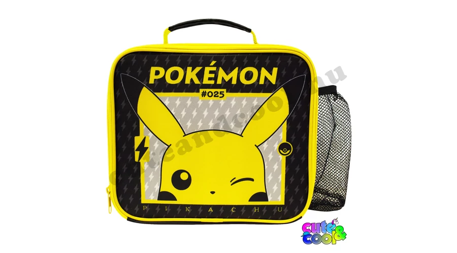 A Pokémon univerzum legikonikusabb pokémonjával, Pikachu-val diszített Pokémonos uzsonnástáka. A könnyen futó cipzáros uzsitáska belseje szigetelt, hőtartó. Nagymérete miatt akár az egésznapi étel is belefér. Tetején kis fogantyú, hátán fehér kis sáv, ahova a tulajdonosa nevét fel lehet írni. Oldalán egy gumis hálós zseb is van, amibe a kulacsot be lehet helyezni. Pokémon rajongó iskolásnak szuper ajándék lehet!