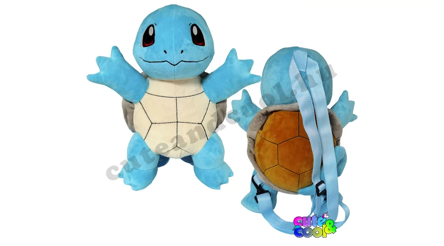 Pokémon Squirtle formájú pihe-puha gyerek táska ! Az eredeti Pokémon licenc táska egy 36 centis Squrtle plüss figura. Az hátizsák 25x15x36cm méretű, hátsó részén cipzárral, ami tökéletes, egy kulacs, szendvics akár ruha és a kedvenc játékok szállítására is. A táska vállpántjai állíthatóak, így kényelmes a használata egy hosszabb kiránduláson is!