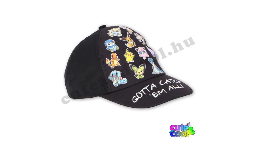 Black Pokémon kids' baseball cap featuring their favorites, Pikachu, Lapras, Eevee, and others. The Pokémon cap has a cotton back that provides good ventilation. Thanks to its adjustable Velcro strap, it is ideal for almost any Pokémon fan child's head size.