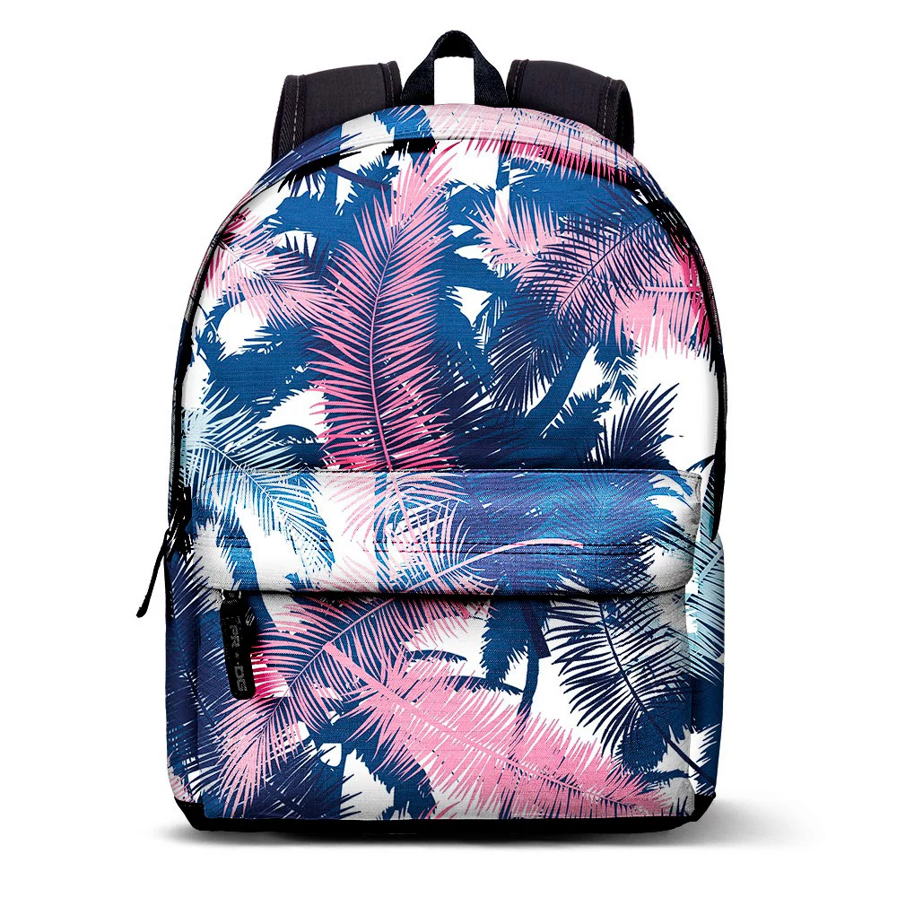 - big-sized school bag - ergonomic design - premium quality - massive, durable, reliable - 2 compartments with strong zip closure - inside pockets - ergonomic, breathable padded back - adjustable padded shoulder straps - strong handle - USB charge port (powerbank not including) - cool tropical design Excellent choice for school!