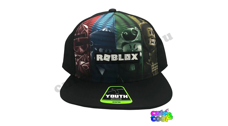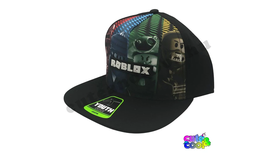 - Roblox snapback for gamers - Featuring characters along with the 3D designed Roblox logo - Style: Snapback (flat slit) - Materials: 80% polyester, 20% cotton - Size: 54 cm - adjustable - Color: black Gift idea for Roblox fans, boys, girls, for birthday, name day, summer holiday Officially licensed product