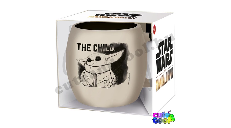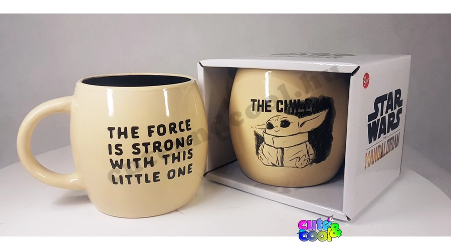 Star Wars Mandalorian bögre. A kerekded, vajszínú bögrén a cuki Grogu (Baby Yoda) mosolyog. Cukiság faktor 10/10!