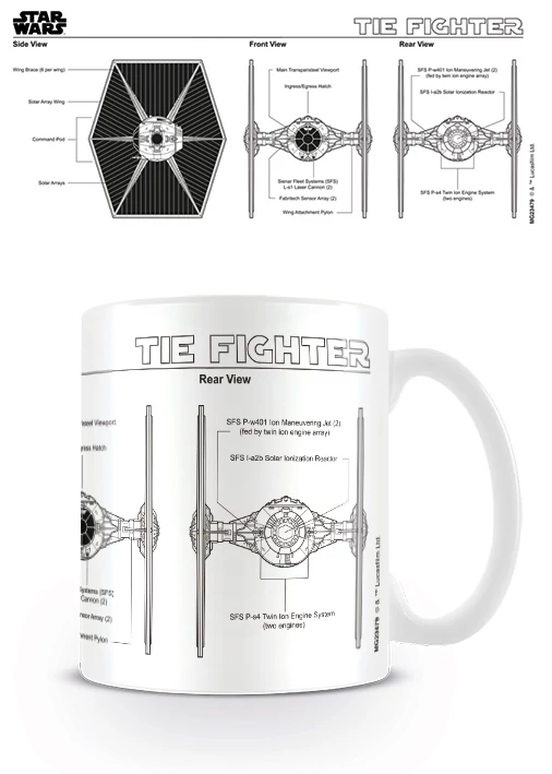 Csatlakozz a sötét oldalhoz Darth Vader oldalán a Tie Fighter-rel! Küzdj meg ellenfeleiddel – hajts végre elképesztő manővereket – és verd le a lázadókat! Vagy csak igyál meg nyugodtan egy finom kávét, teát, kakaót ebből a különleges Tie Fighter tervrajzot mintázó bögréből!
