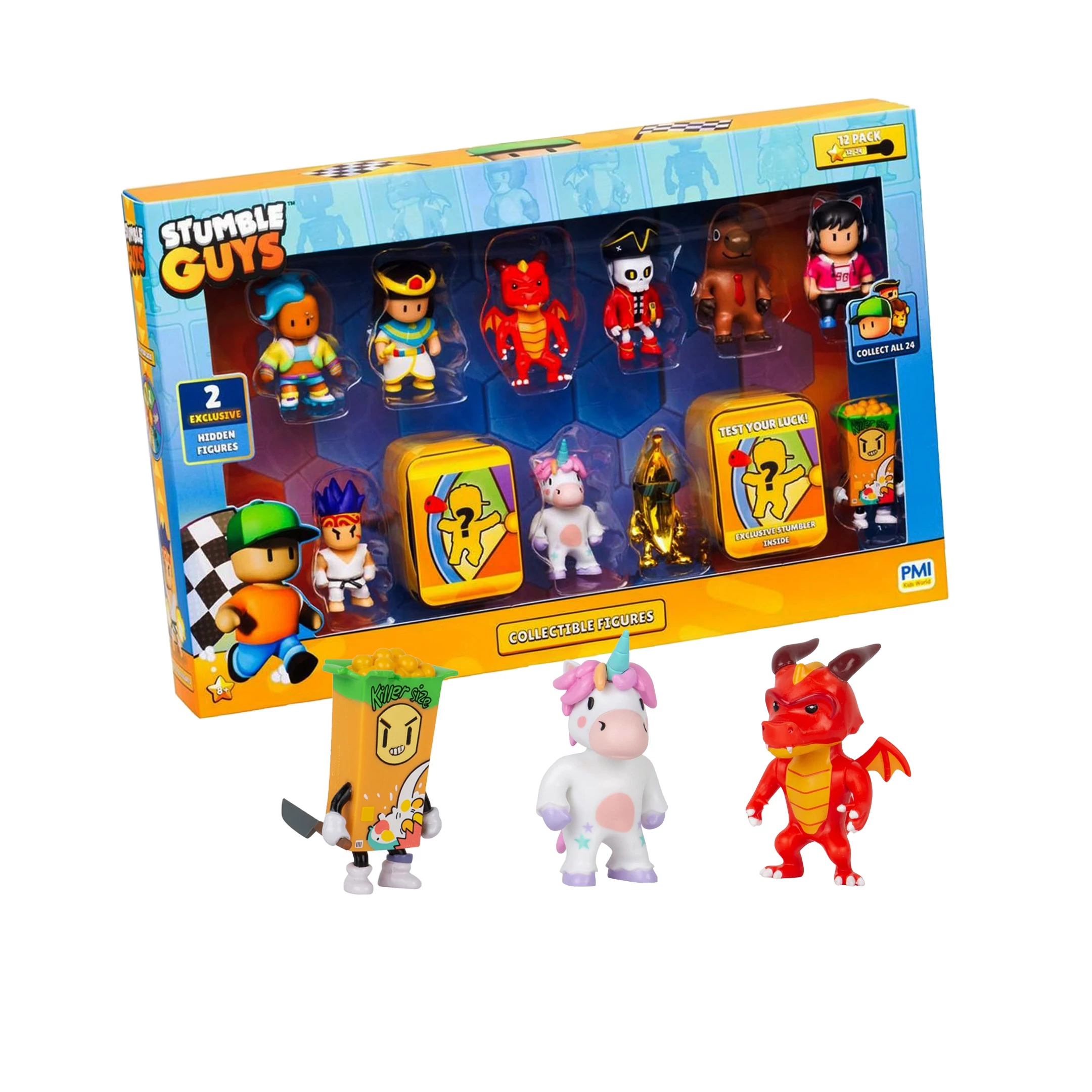 Végre nem csak a telefonon vagy PC-n lehet veled kedvenc Stumble Guys karaktered. Itt ez a szuper 12 darabos figura szett melyben találsz 2 exkluzív meglepetés figurát is. Szuper ajándék minden Stumble Guys rajongónak! Gyűjtsd össze mind a 2 szettet!