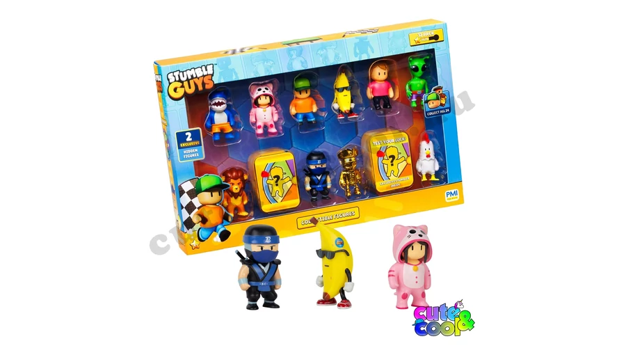 Végre nem csak a telefonon vagy PC-n lehet veled kedvenc Stumble Guys karaktered. Itt ez a szuper 12 darabos figura szett melyben találsz 2 exkluzív meglepetés figurát is. Szuper ajándék minden Stumble Guys rajongónak! Gyűjtsd össze mind a 2 szettet!